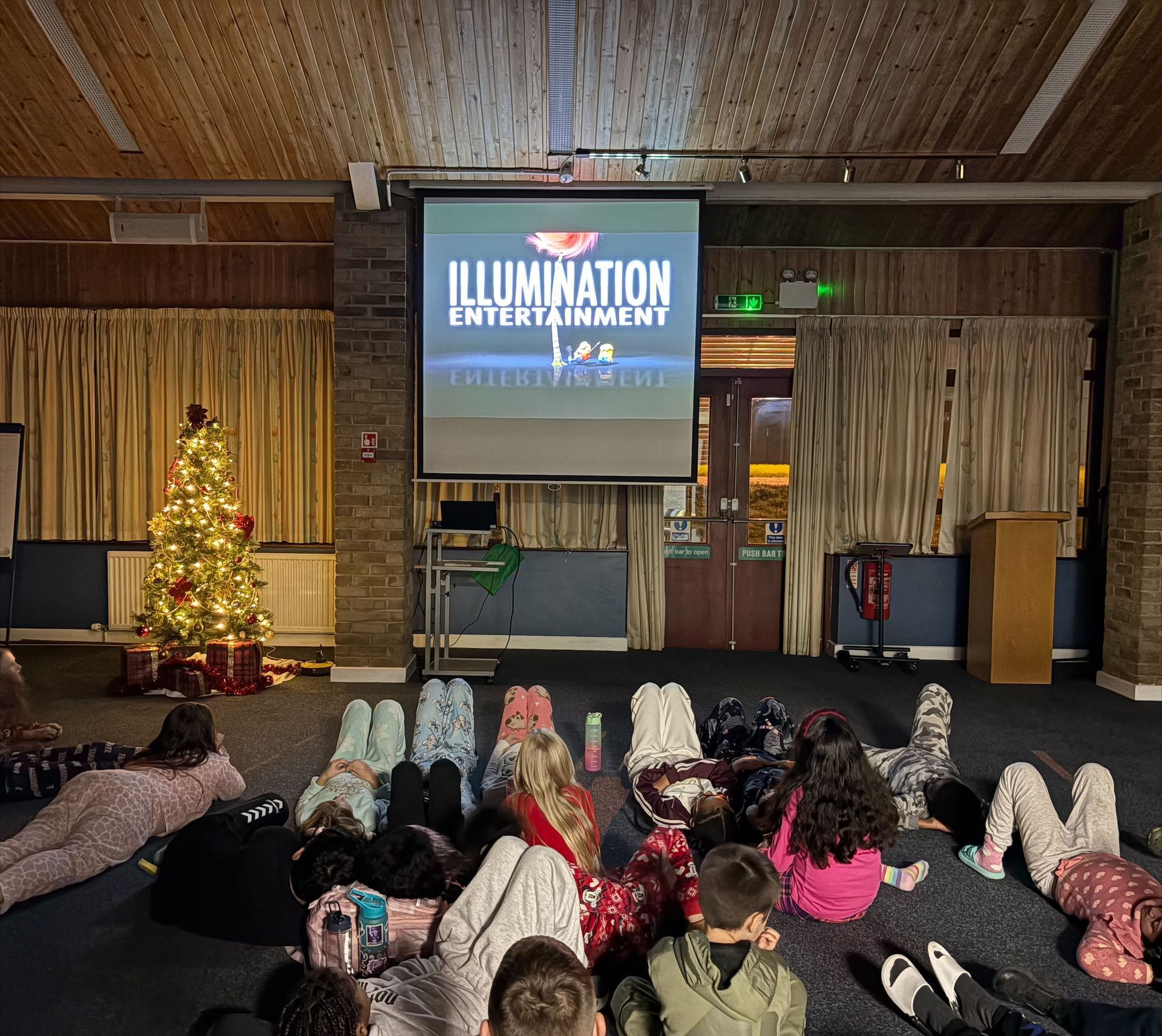 After a lovely dinner, everyone settled down to watch a movie with popcorn and hot chocolate.